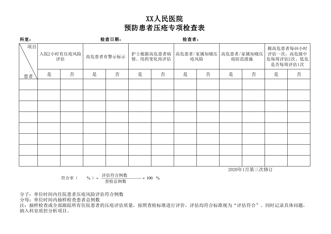 防范患者压疮专项督导检查表