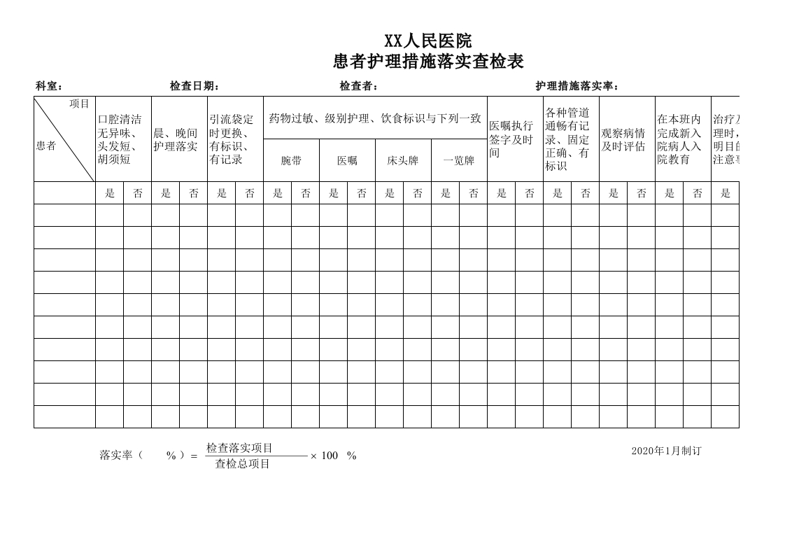 护理措施检查表