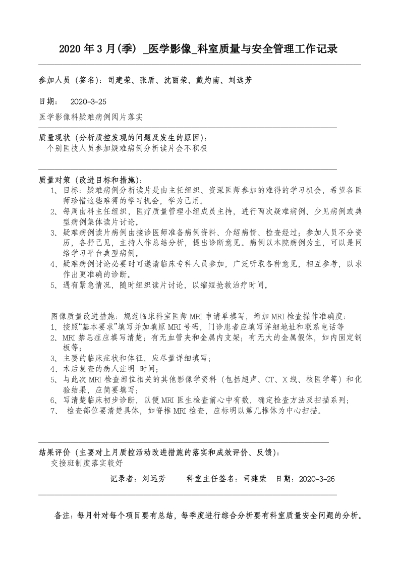 首页综合资料综合其他2020年3月科室质量监控安全记录