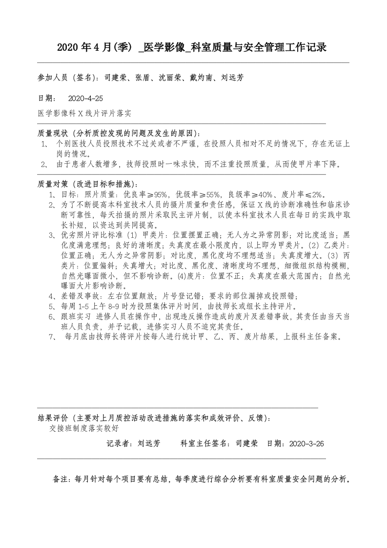 首页综合资料综合其他2020年4月科室质量监控安全记录