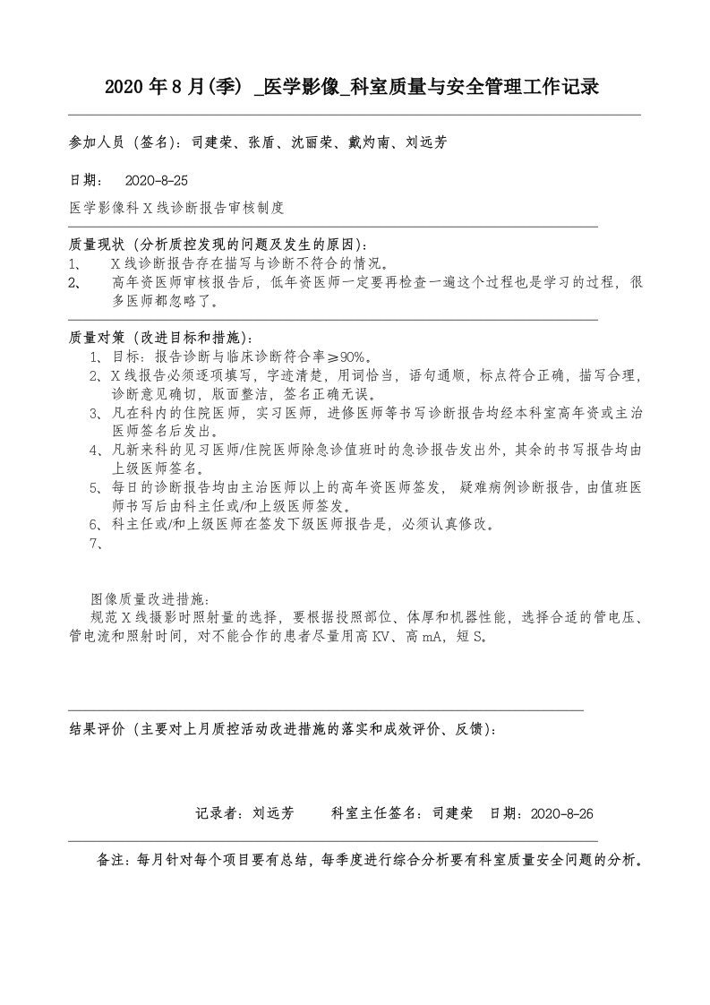 首页综合资料综合其他2020年8月科室质量监控安全记录