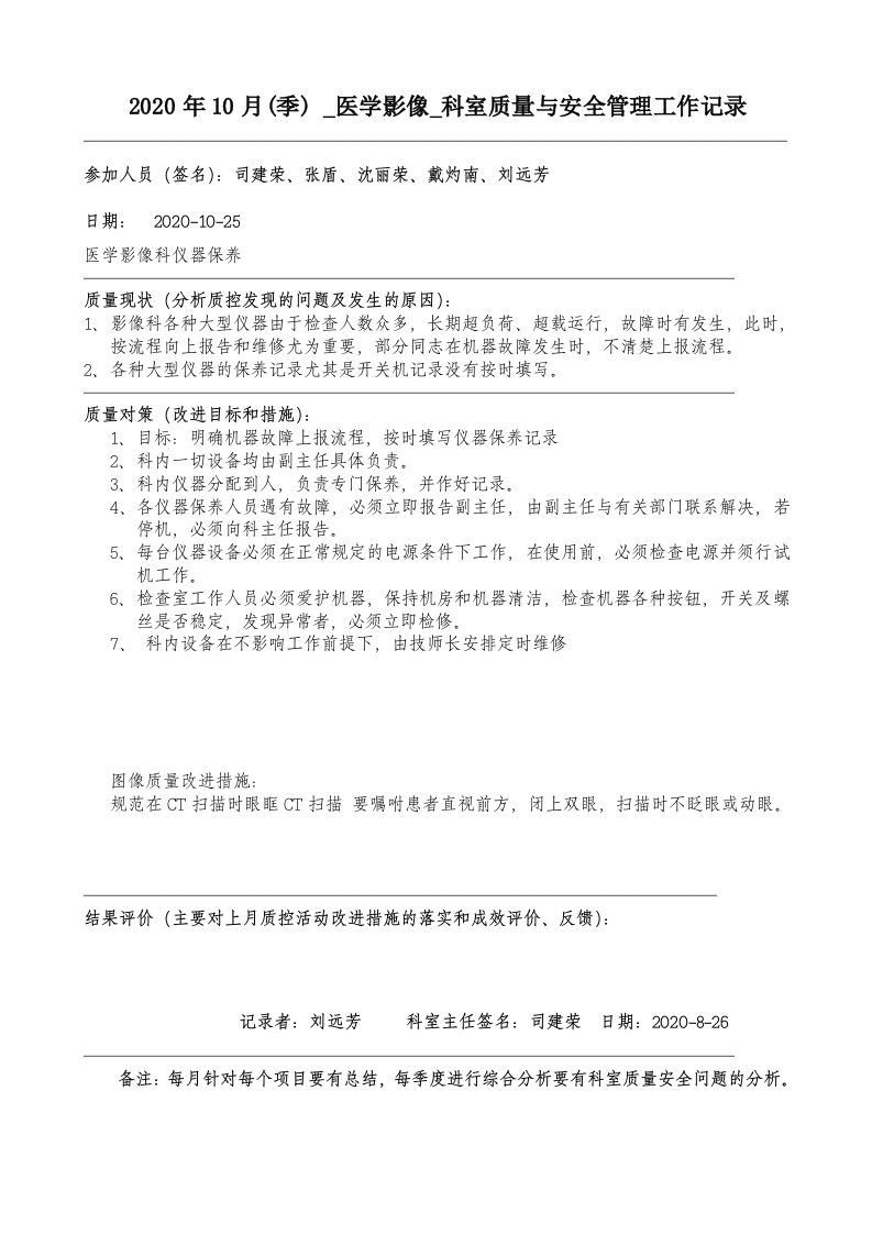 首页综合资料综合其他2020年10月科室质量监控安全记录