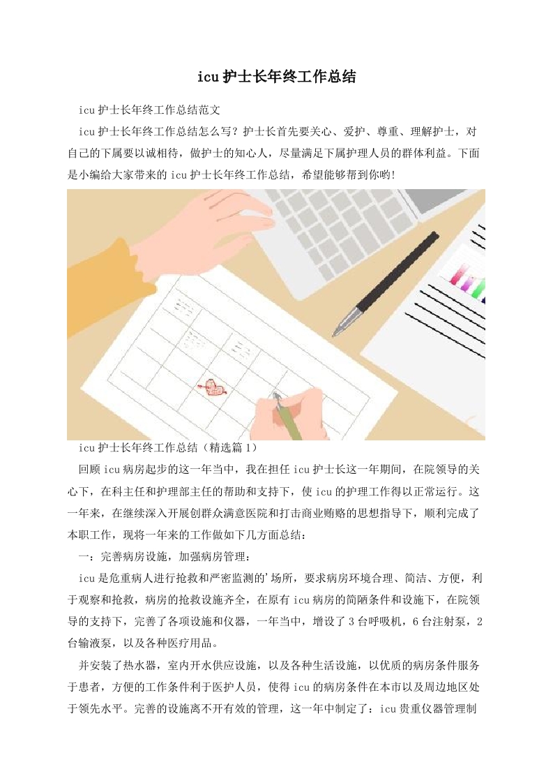 首页医路成长总结报告icu护士长年终工作总结