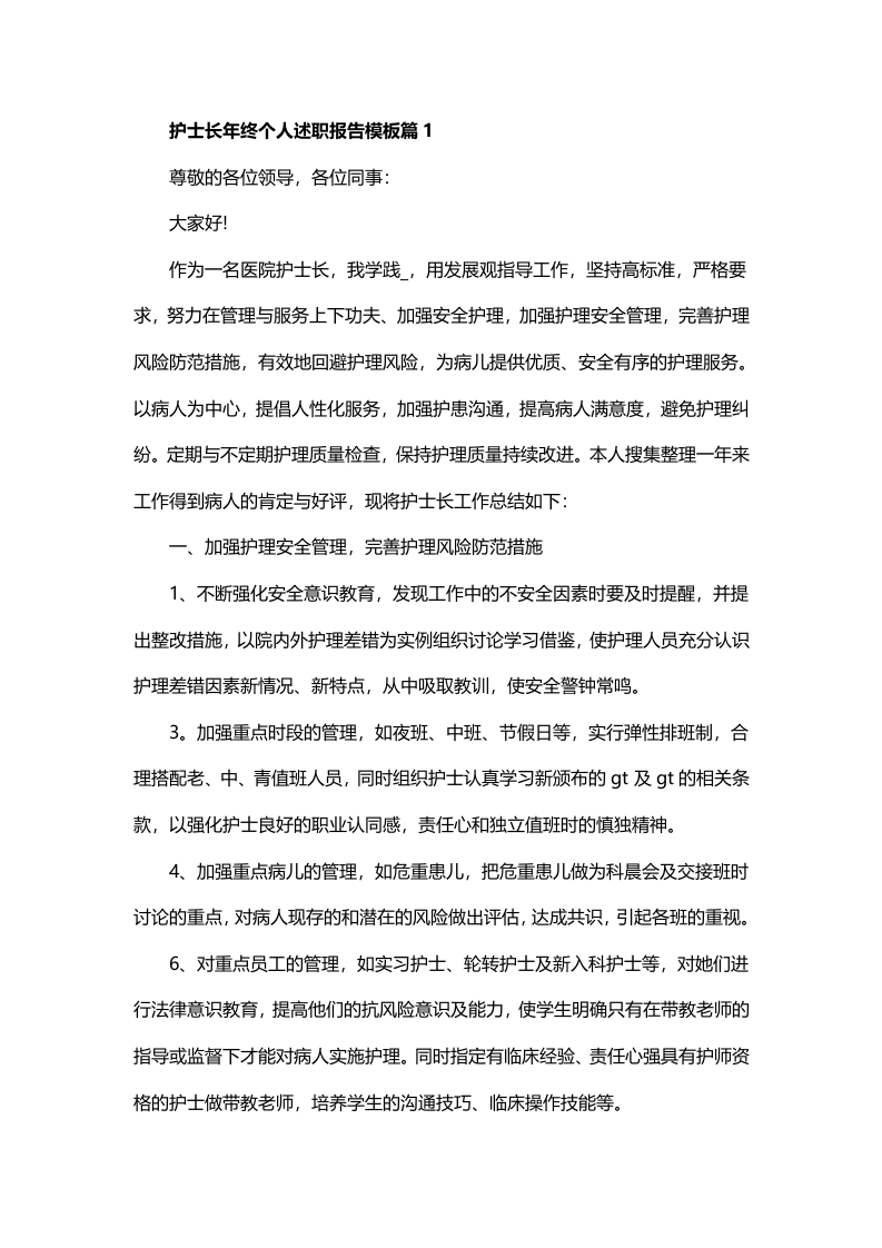 首页医路成长总结报告护士长年终个人述职报告(10篇)