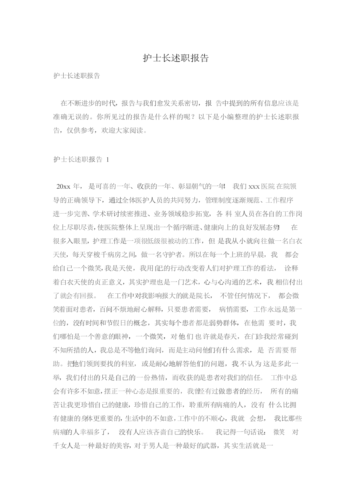 护士长述职报告8篇
