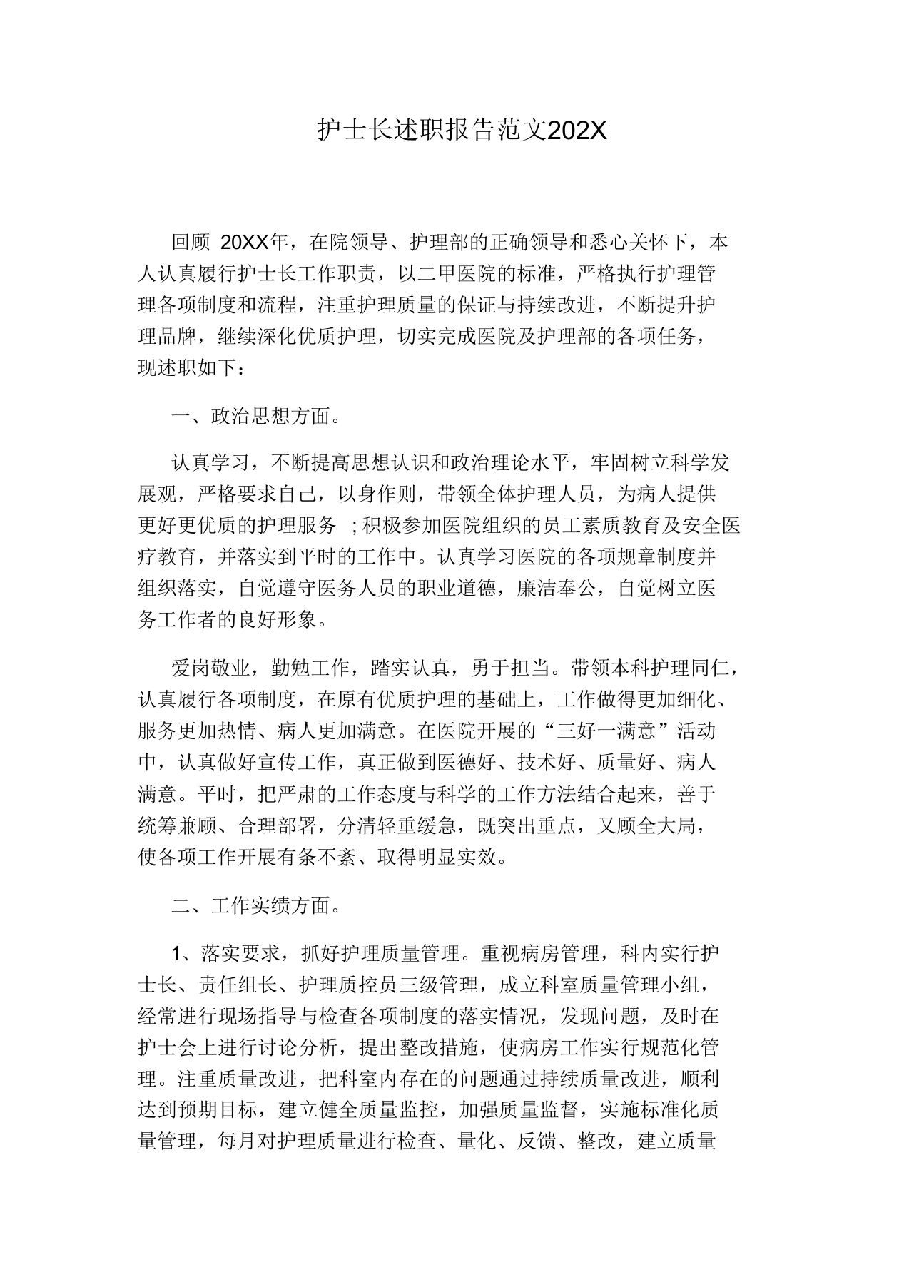 护士长述职报告范文