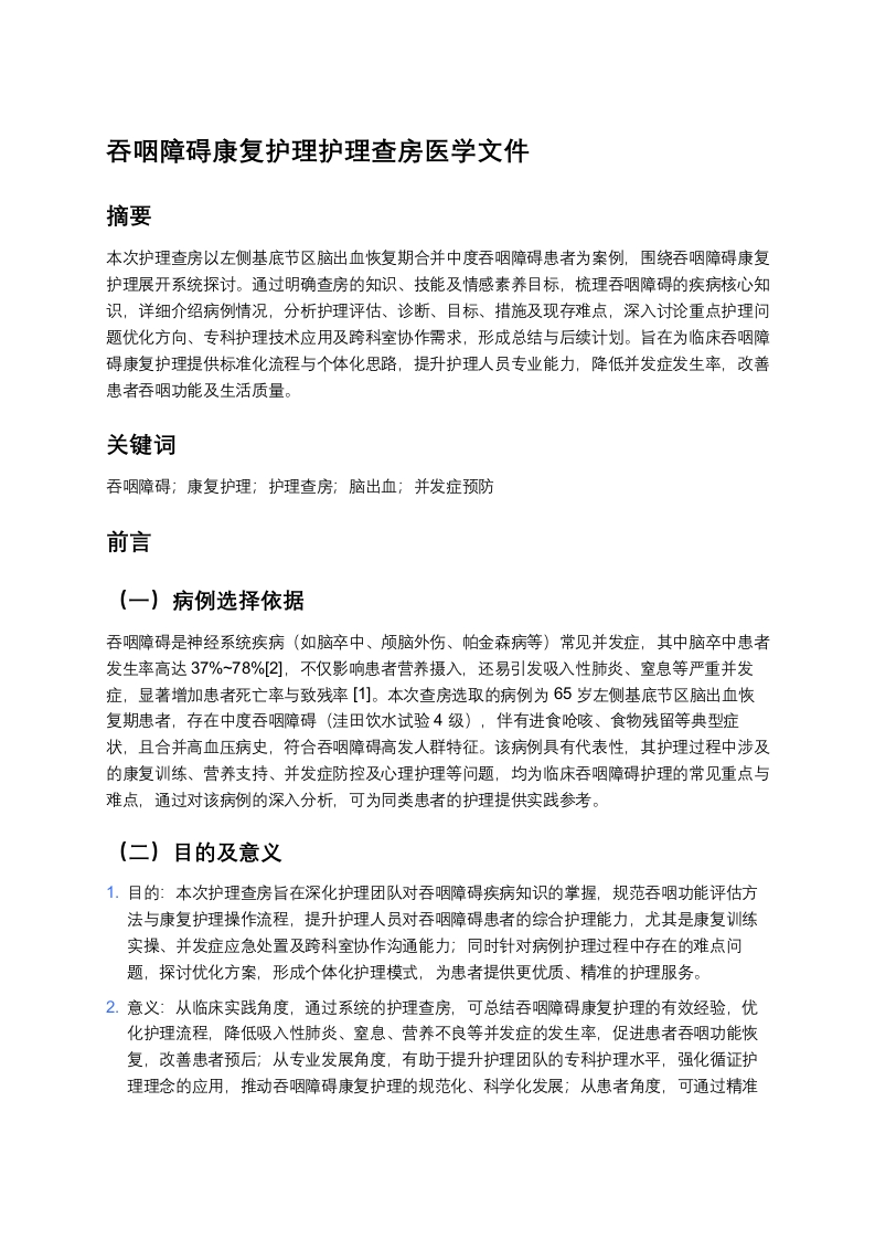 首页护理专题内科系统护理吞咽障碍康复护理