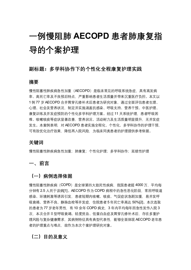 一例慢阻肺AECOPD患者肺康复指导的个案护理