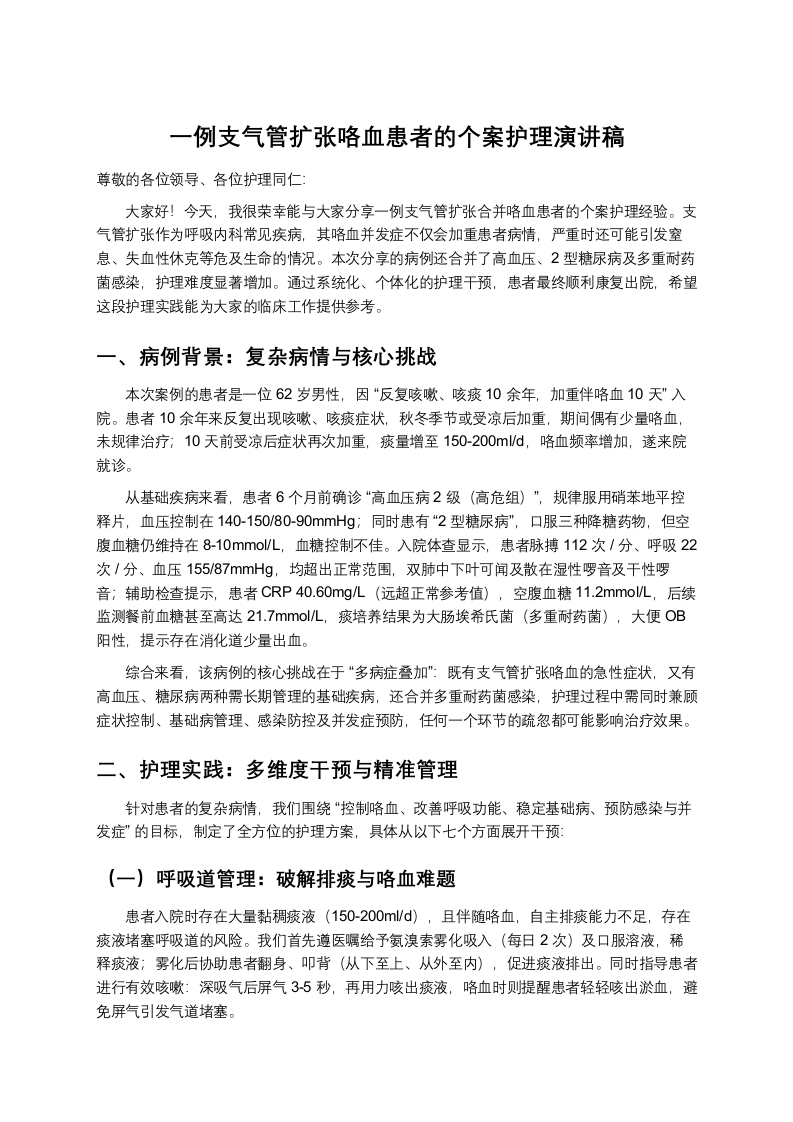 支气管扩张咯血护理个案演讲稿