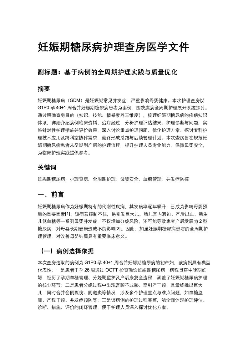 首页护理专题内科系统护理妊娠期糖尿病护理查房