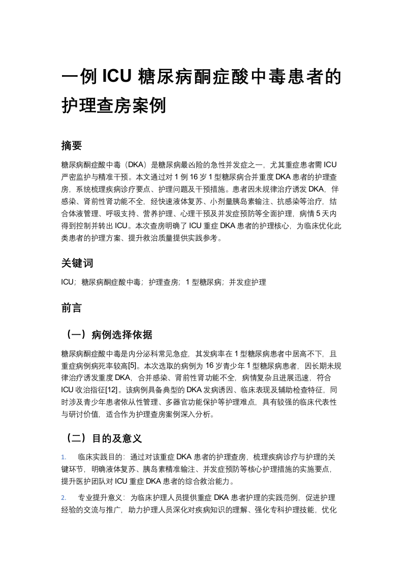一例ICU糖尿病酮症酸中毒患者的护理查房案例
